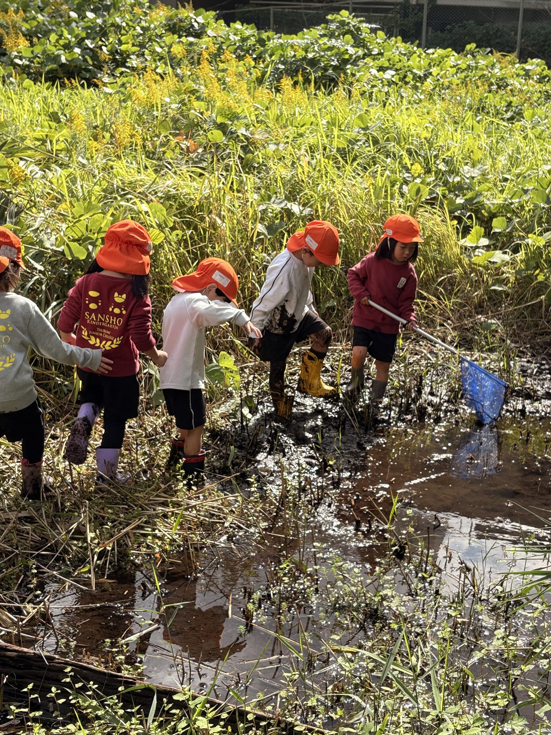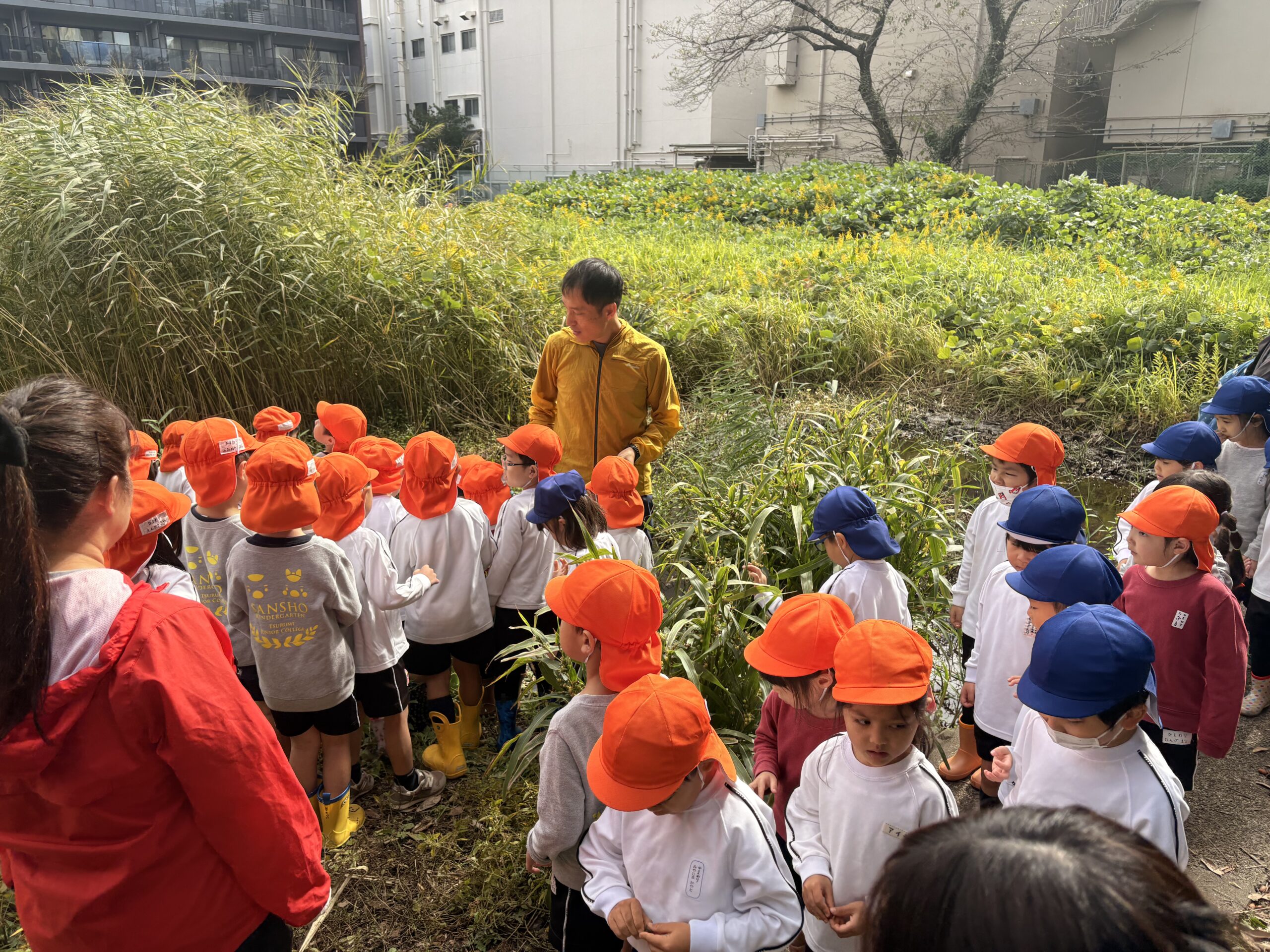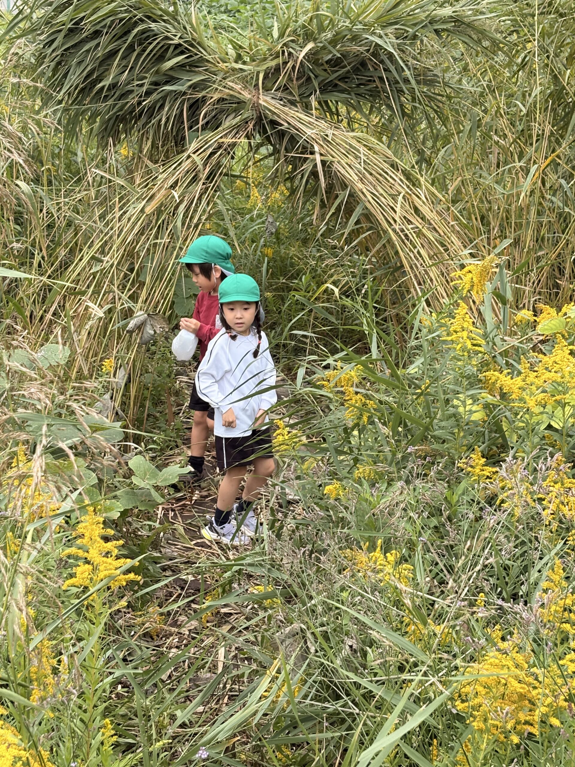 先日は、保育科の造形の授業で、たくさん生えている葦を使った秘密基地作りに挑戦。