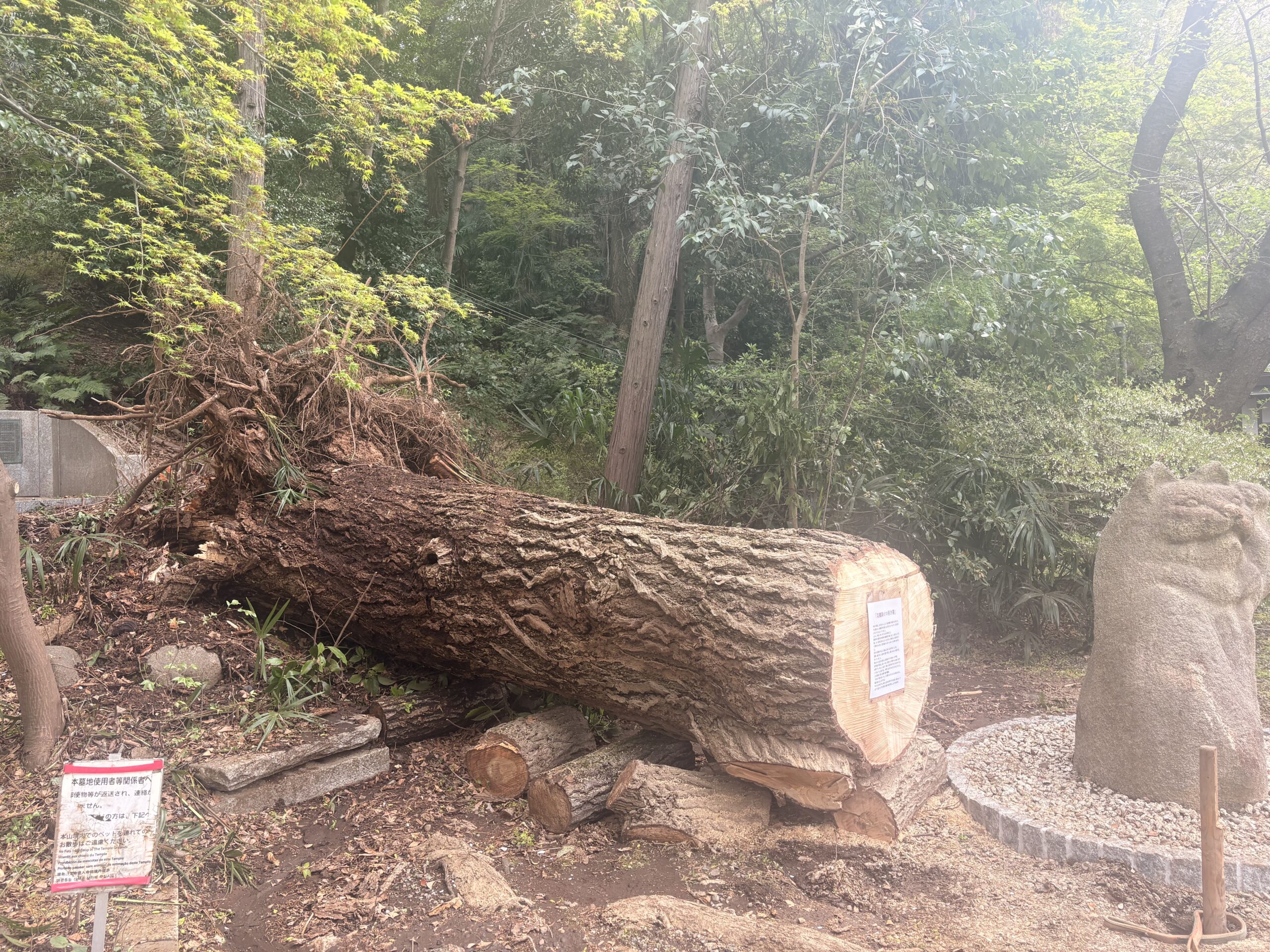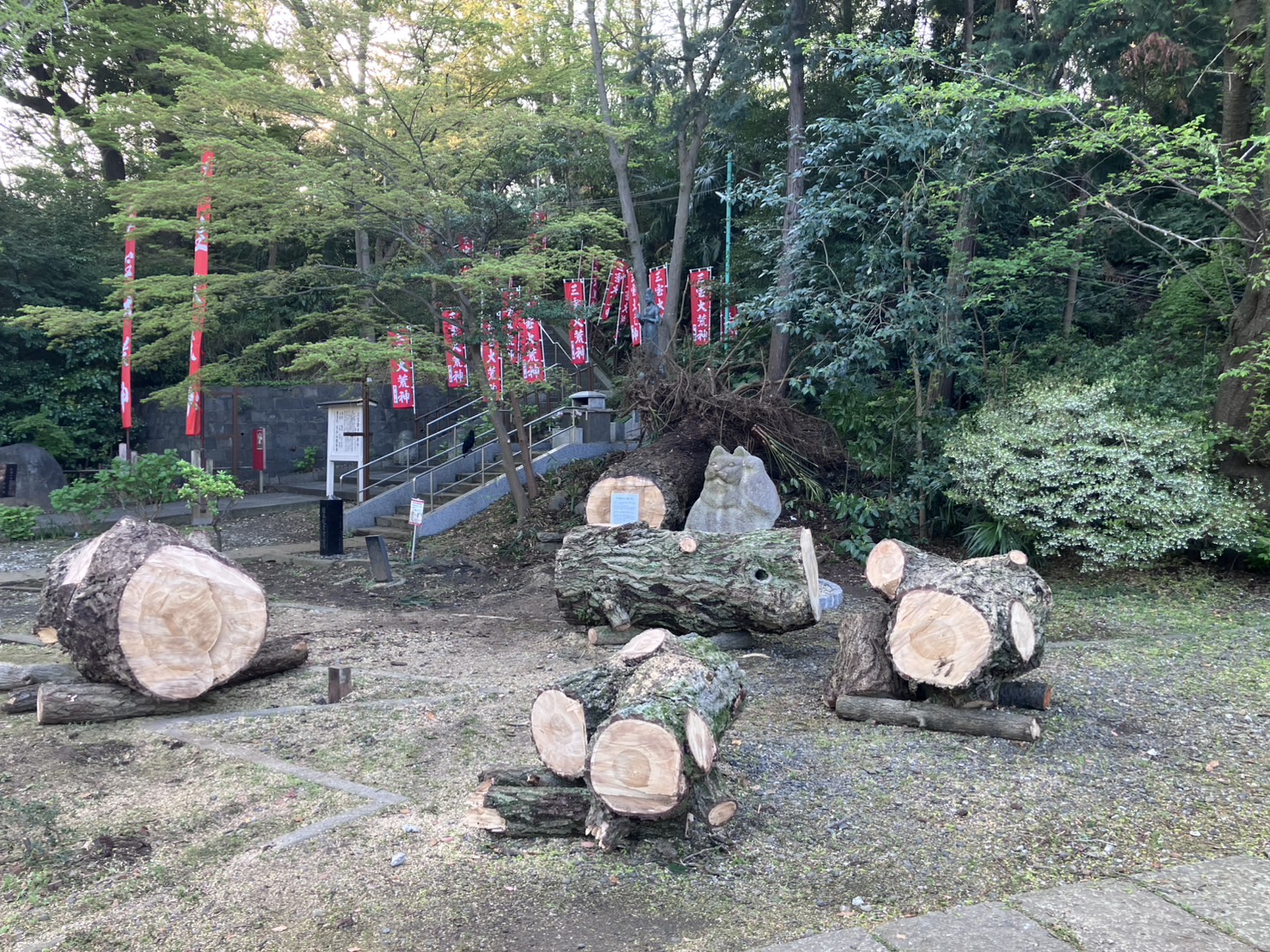 深夜の大風で境内の大きな銀杏の木が倒れたのだそうです。