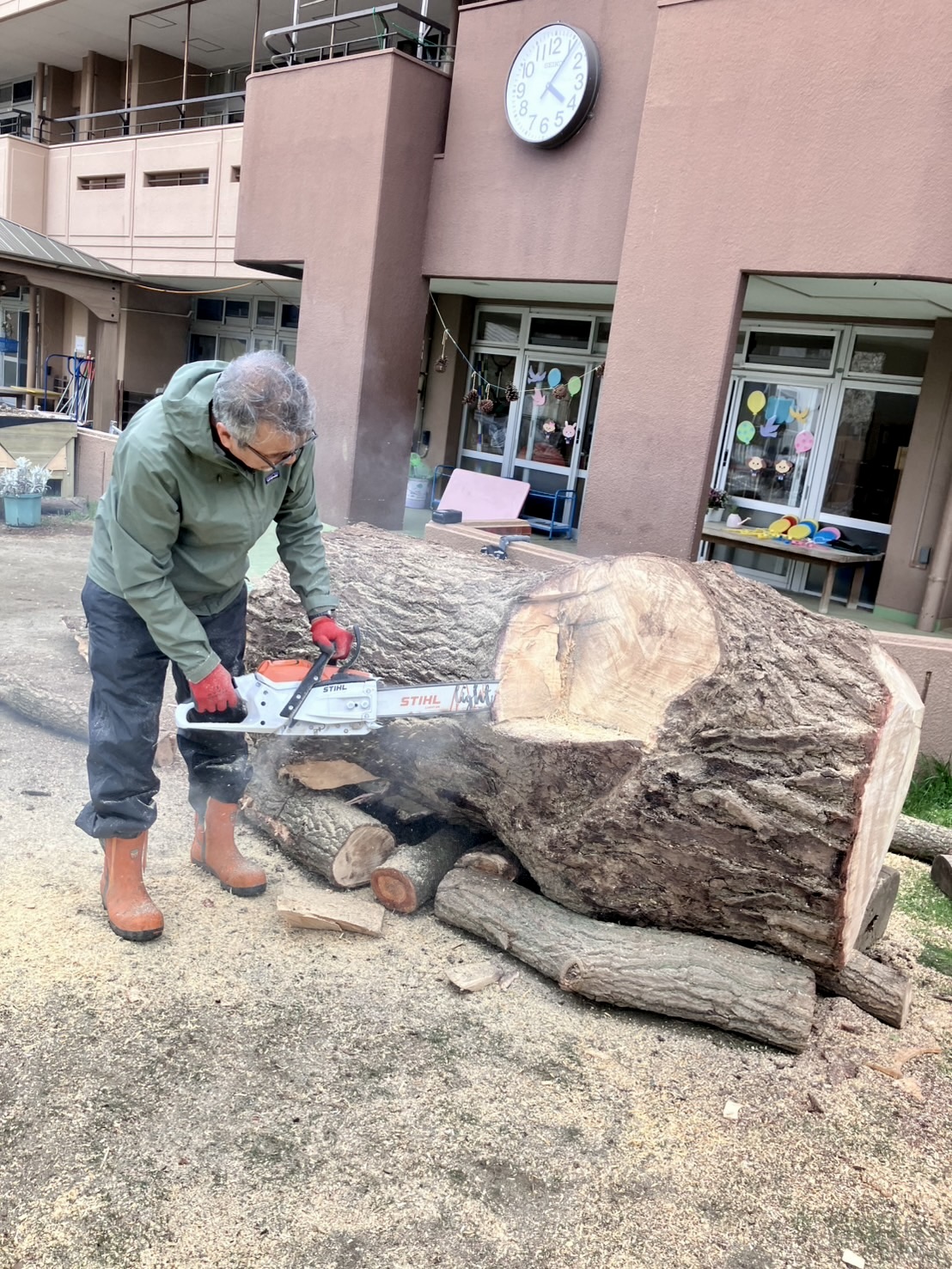 長く親しまれてきた銀杏の木を子どもたちのために生かそうと、一部を幼稚園に運んでもらうことにしました。